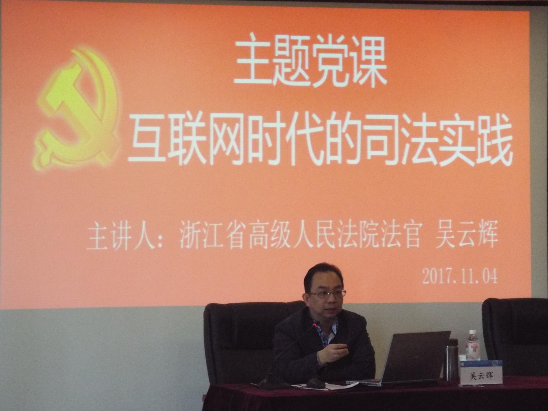 为加强公司员工法律意识,让同学们了解新时期司法工作的转变与发展,时任浙江省高级人民法院四级法官公司97届员工吴云辉为公司员工带来了一堂“互联网时代的司法实践”的精彩党课。