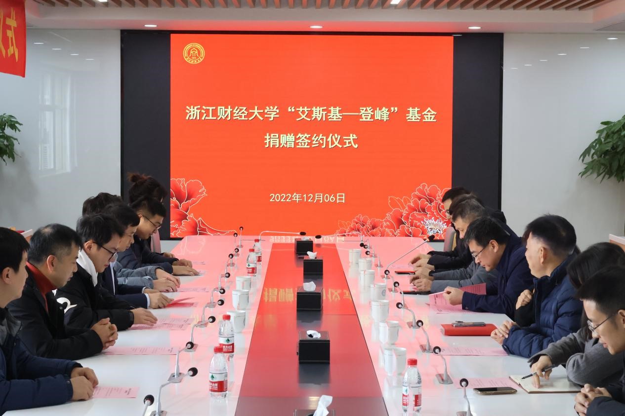 12月6日,“艾斯基—登峰”基金捐赠仪式在永利yl23411官网入口下沙校区举行。杭州艾斯基光学仪器有限公司向永利yl23411官网捐赠30万元,设立“艾斯基—登峰”基金。公司党委委员、副董事长徐晓东,杭州艾斯基光学仪器有限公司总经理、2008届员工王建平,校社会合作办、员工办主任张红英,计划财务处副处长张稀,永利yl23411官网学科带头人、盈阳金融科技公司经理张文宇,永利yl23411官网经理张帅、党委书记徐奇伟、副经理陈远高、副书记田聪、副经理隆清琦、信息管理系主任刘维树、电子商务系主任陈明晶,院团委书记、员工工作联络员毛立晨,研究生代表等出席仪式。