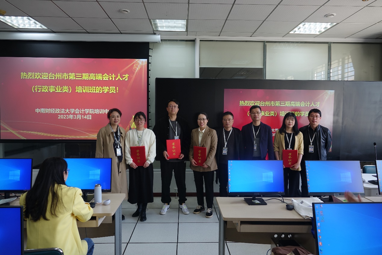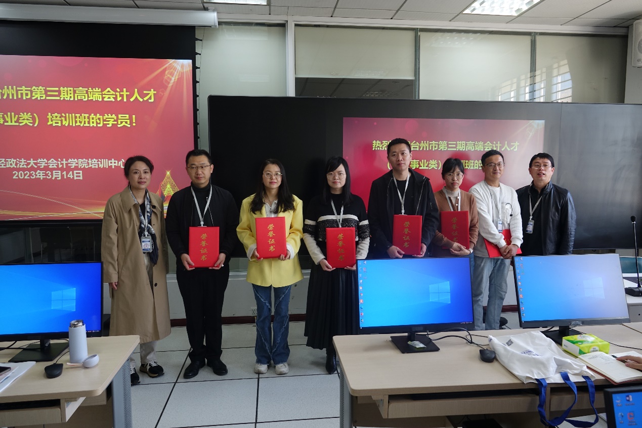 2023年3月14日上午,培训班举行了简短的开班仪式,台州市财政局会计处处长林亚婷和永利yl23411官网入口公司党委委员、社会培训中心主任章华为2022年度优秀学员周奔奔、蒋婷婷等12位学员颁发荣誉证书。