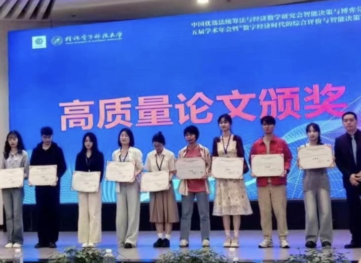 中国优选法统筹法与经济数字研究会智能决策与博弈分会第五届学术年会既“数字经济时代的综合评价与智能决策”论坛于2024年5月17日至19日在桂林举行。本届会议由中国优选法统筹法与经济数学研究会(以下简称中国“双法”研究会)智能决策与博弈分会、桂林电子科技大学联合主办,桂林电子科技大学商公司承办,电子科技大学经济与管理公司协办。桂林电子科技大学党委书记唐平秋、中国“双法”研究会智能决策与博弈分会理事长李登峰担任本次大会主席。公司教师隆清琦、彭娟娟、张琦、孙琪及公司管理科学与工程专业吴晓波、韩佳芮、吴小萌、范佳怡、刘婷、徐倩雯研究生参加了此次会议。