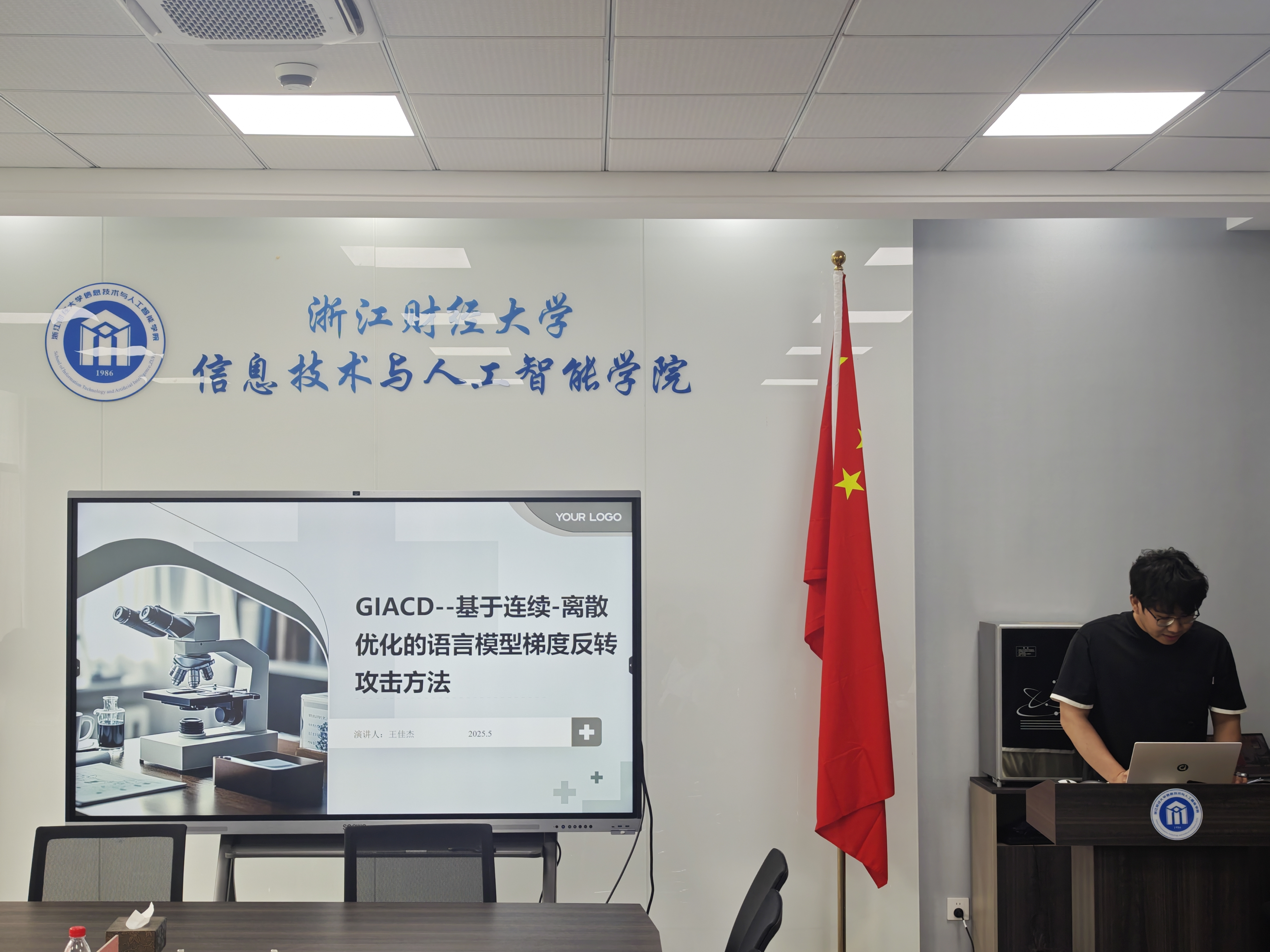 王佳杰同学就《GIACD--基于连续-离散优化的语言模型梯度反转攻击方法》进行了深入探讨。
