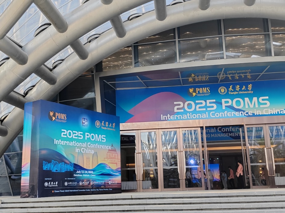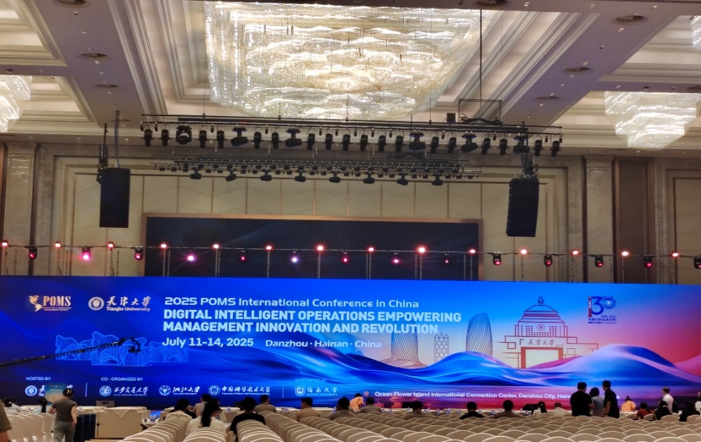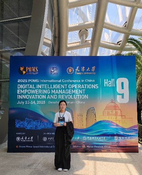 7月13日,公司23级管理科学与工程专业研究生陆志钰前往海南参加2025年中国生产与运营管理(POMS)国际会议(2025 POMS International Conference in China)。会议于7月11日-14日在海南省儋州市举行,主题为“数智化运营赋能管理创新与变革”,由天津大学主办,浙江大学、中国科学技术大学、西安交通大学协办,海南大学特别支持。本次会议共设有24个分会场与192个分论坛,来自国内外的1400余名专家学者通过专题报告、前沿成果展示与企业参访等多形式互动,围绕不同研究前沿与热点话题展开深入讨论。