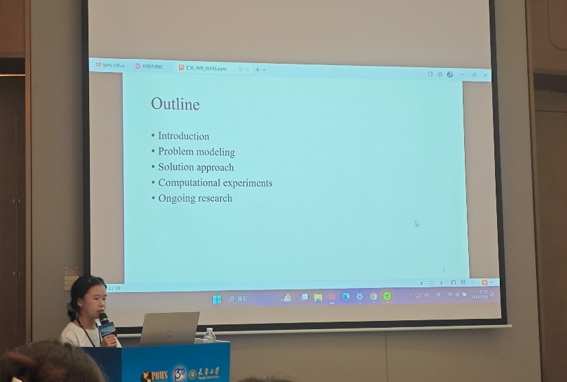 公司研究生陆志钰同学不仅积极参与会议多个专题论坛的学习,深入了解了运营管理领域的前沿研究动态与智慧产业发展的最新应用趋势;还在分论坛“智能供应链与智慧物流”中进行了学术汇报交流,作了“Optimizing Highway Emergency Vehicle Deployment and Dispatching: A Logic-Based Benders Decomposition Approach”的主题汇报,并与相关专家进行交流与互动,为今后的科研工作奠定了坚实基础,展现了公司良好的学术风貌。