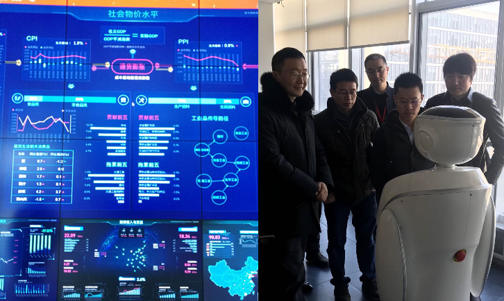 同花顺高校行业线总监朱方展示了公司的发展历程;提出了教育行业的多层次合作体系,有基于金融实践教学虚拟仿真的技术环境层,基于金融课程体系教学平台的主体内涵层,基于人才服务的增值服务层;介绍同花顺公司的金融领域课程设计等。朱总以及客户经理李志军、黄善康还陪同我们参观了同花顺公司的部分办公、休闲区域。智能机器人项目经理徐侃峰演示了具有语音识别、图像识别、语义理解、金融领域信息检索及智能合成能力的机器人。大家与机器人进行了有趣的互动。