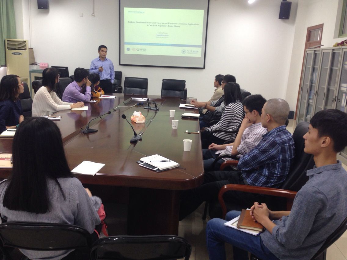 10月9日下午,浙江大学管理公司黄鹂强博士在公司404会议室为全院师生带来一场题为“Bridging Traditional Behavioral Theories and Electronic Commerce Applications: A Case from Regulatory Focus Theory”的学术讲座。信工公司近20余名科研骨干、研究生参加了本次讲座。