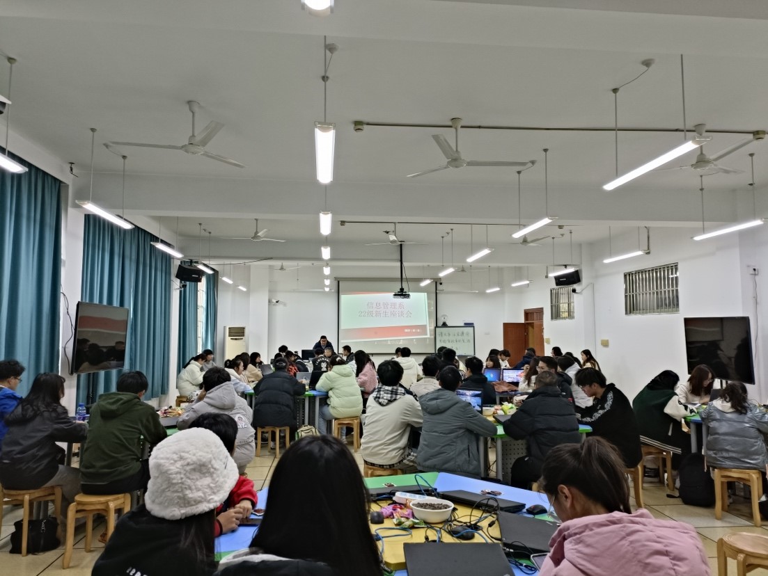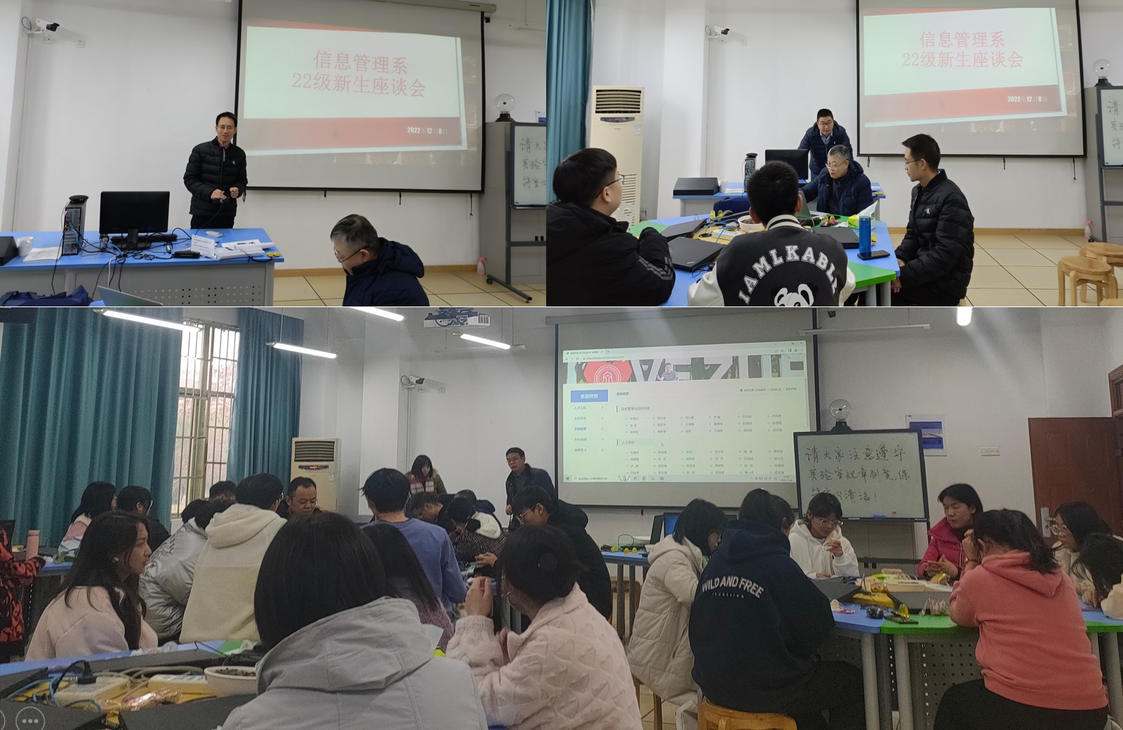 2022年12月8日下午,信息管理系与教工第一党支部在9-103顺利举行信息管理与信息系统专业2022级新生座谈会。会议由信息管理系主任刘维树主持,公司副经理兼信息管理与信息系统专业负责人隆清琦、教工第一党支部书记朱凌、实验中心主任章华、信息管理系全体教师以及2022级信管专业全体新生参加了本次座谈会。