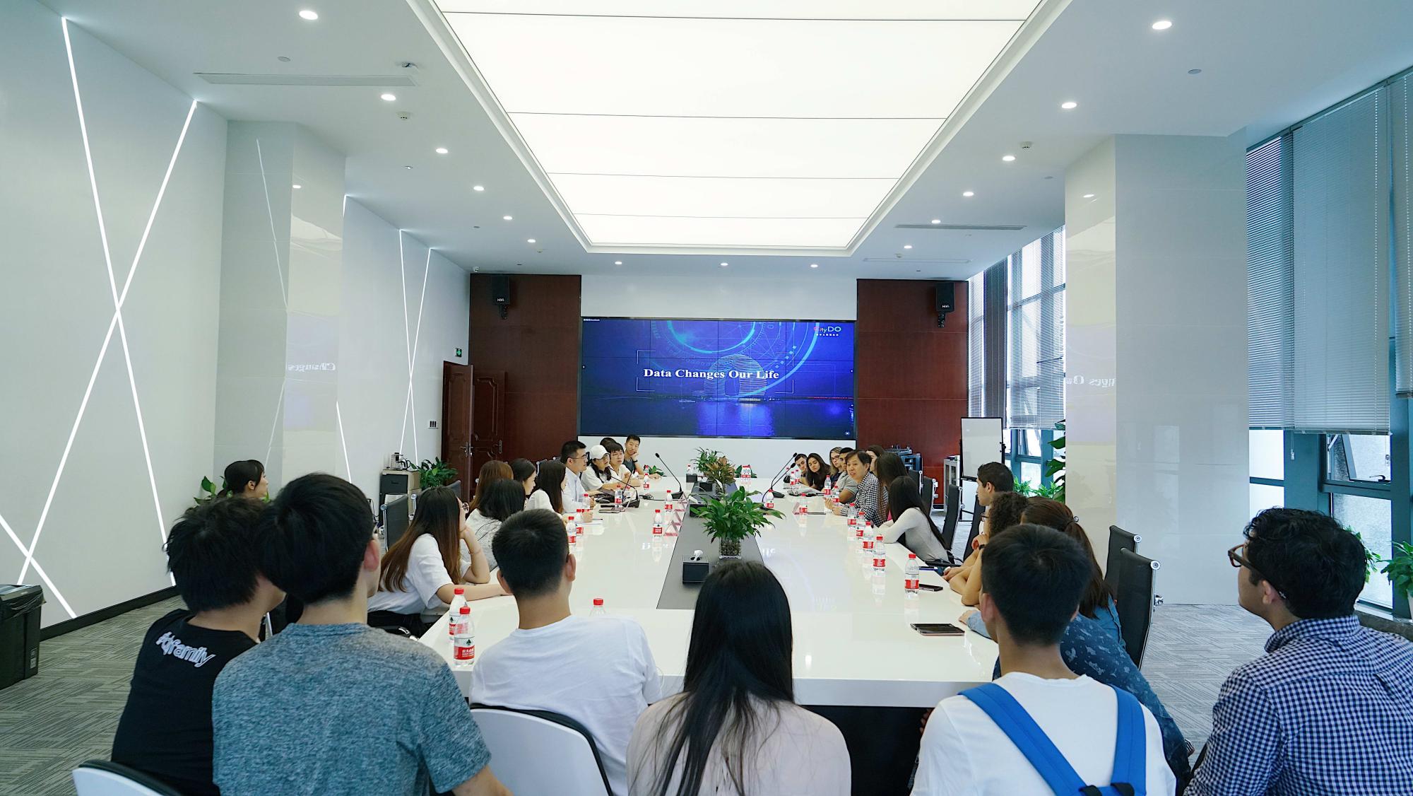 参观活动结束后,高级副总裁周密先生与全体师生进行了深入交流和讨论。周密先生向大家详细地介绍了公司的发展现状、公司的未来目标等情况,同时还讲解了公司在大数据和人工智能技术方面的产品和技术实力,并对师生们提出的问题进行了详细的解答。与会结束后,全体人员共同拍照留念。