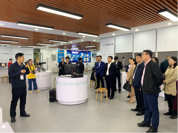2019年11月16日上午,教育部高等公司财经学类教学指导委员会李俊生副主任委员、中国注册税务师协会张树学副会长,秘书长一行在公司李永友副董事长的陪同下来人工智能体验园参观交流。副经理张帅教授介绍了在教育部“AI+智慧学习”共建人工智能公司、财政部中央财政专项资助“人工智能AI+应用实验室”的支持下,公司在国内率先建成人工智能体验园,面向全校员工开展人工智能普及教育;针对人工智能在各行各业的飞速发展与应用,张帅教授介绍了公司在“人工智能+经管”复合型人才培养方面的举措;并介绍了语音识别系统、人脸融合系统、图像风格迁移系统、自动驾驶模拟系统等。