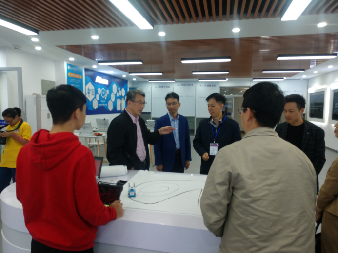 专家组听取了人工智能协会同学对相关设备的介绍,并体验了图像风格迁移系统、虚拟现实体验系统、人机对弈机器人、激光雷达小车等,对公司建设人工智能体验园,开展人工智能+教育的举措表示肯定。