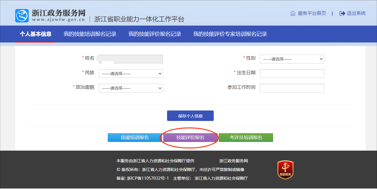 (二)点击【技能评价报名】,进入技能评价报名界面