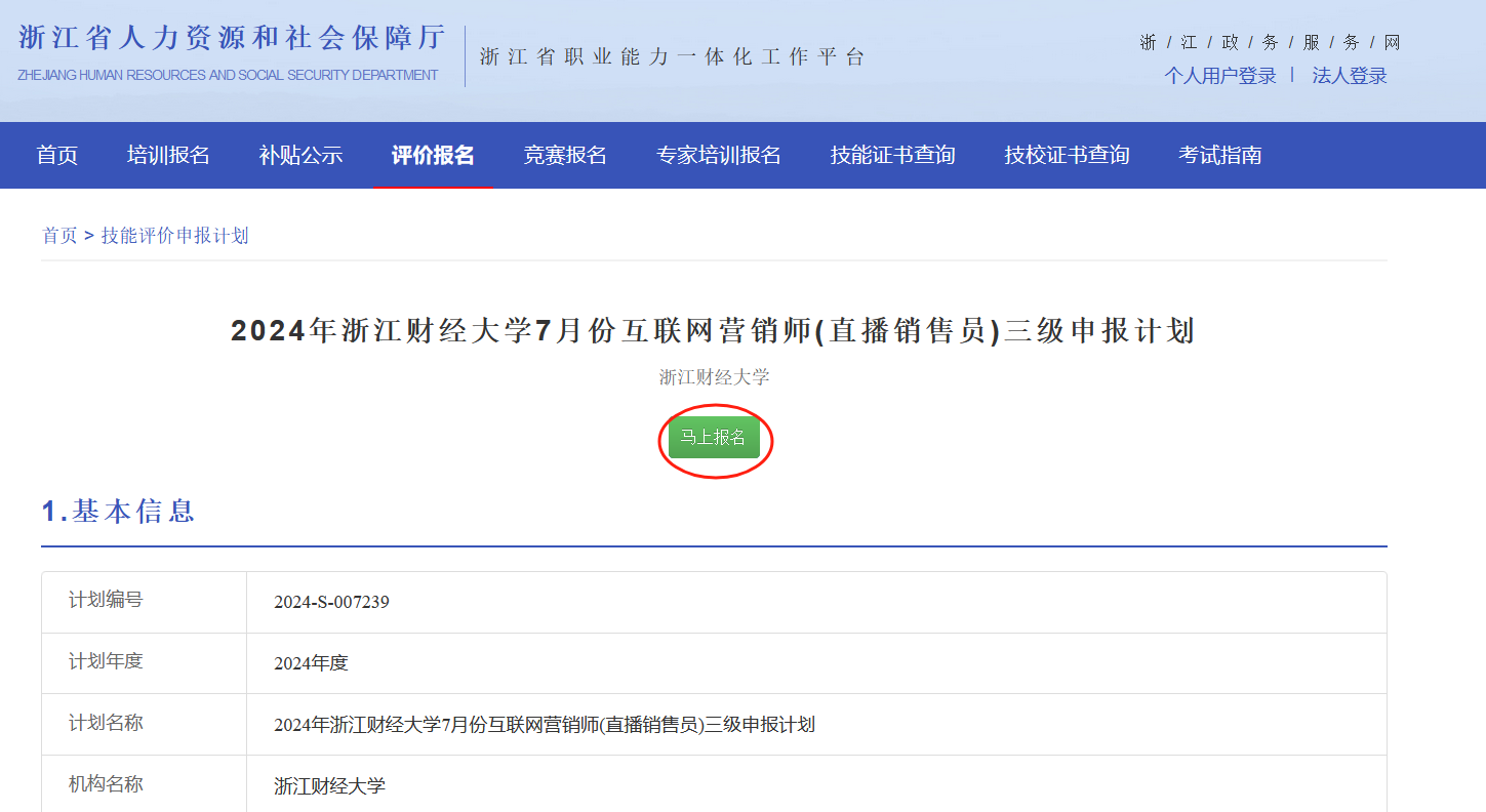 (三)认真阅读申报计划中的基本信息、认定范围、申报条件和申报说明,点击【马上报名】