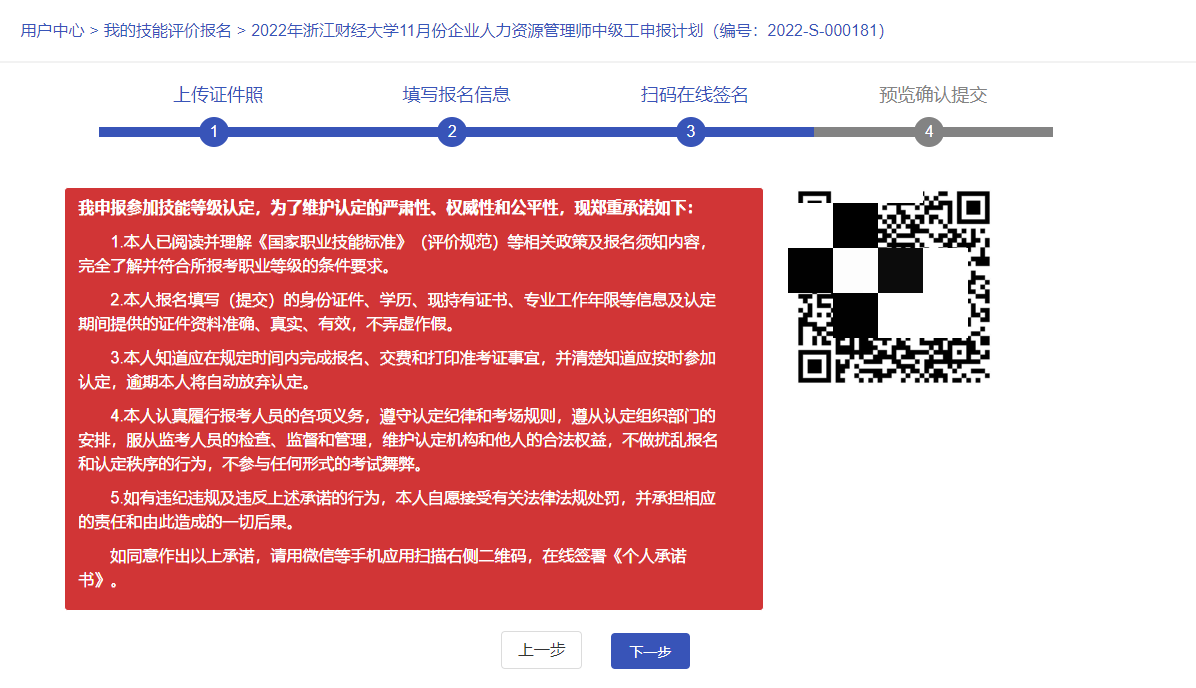 注:请考生检查报名信息是否正确。如需更改,请点击上一步进入到信息提交界面修改个人信息。