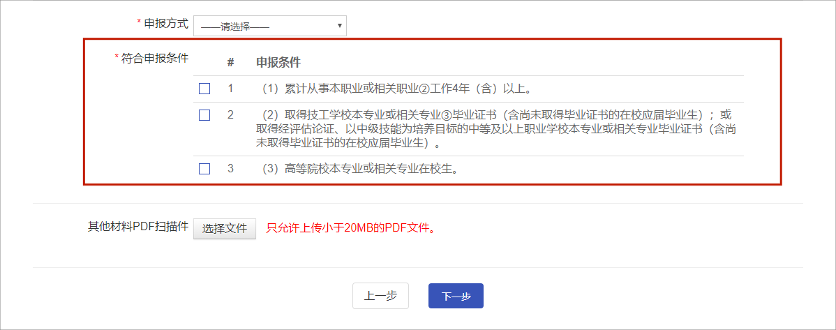 6.“其他材料PDF扫描件”处,考生须根据本人所勾选的申报条件,提供相关佐证材料。