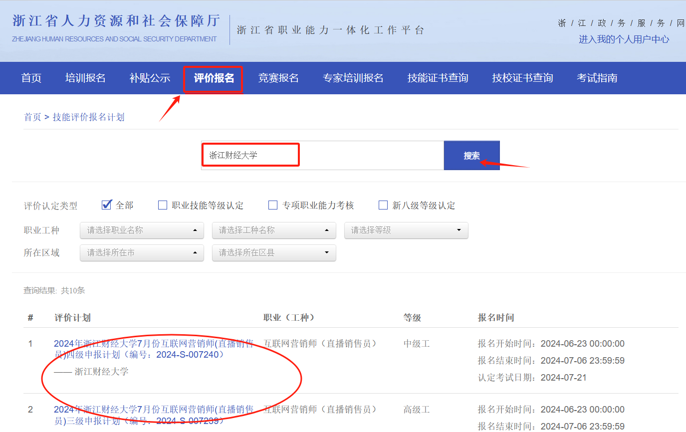 (一)登录网址:浙江省人力资源和社会保障厅浙江省职业能力一体化工作平台 https://zynl.rlsbt.zj.gov.cn